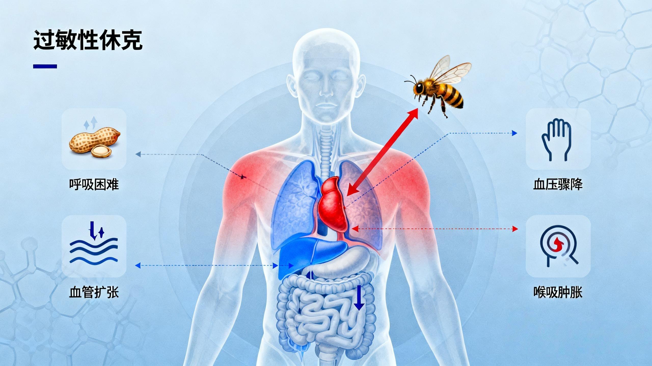 过敏性休克是一种严重的、可致命的全身性超敏反应,多伴有皮肤系统表现。它发生迅猛,通常在接触过敏原后几分钟至几小时内出现,涉及多个器官系统。